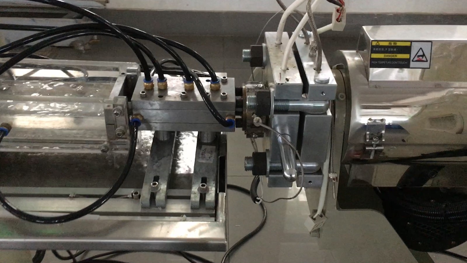 1. 真空加料機把膠料吸進擠出機
